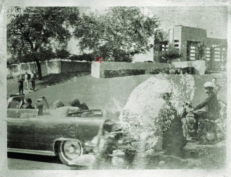 W 1967 roku Josiah Thompson, autor książki Six Seconds in Dallas, przeprowadził dogłębną analizę zdjęcia. Na powiększeniu zobaczył postać, około ośmiu metrów od południowo-wschodniego narożnika ogrodzenia. Jego zdaniem sylwetka mogła należeć do strzelca. W tym samym czasie Raymond Marcus zasugerował, że postać na zdjęciu trzyma karabin, co podsyciło teorie o dodatkowych zamachowcach.